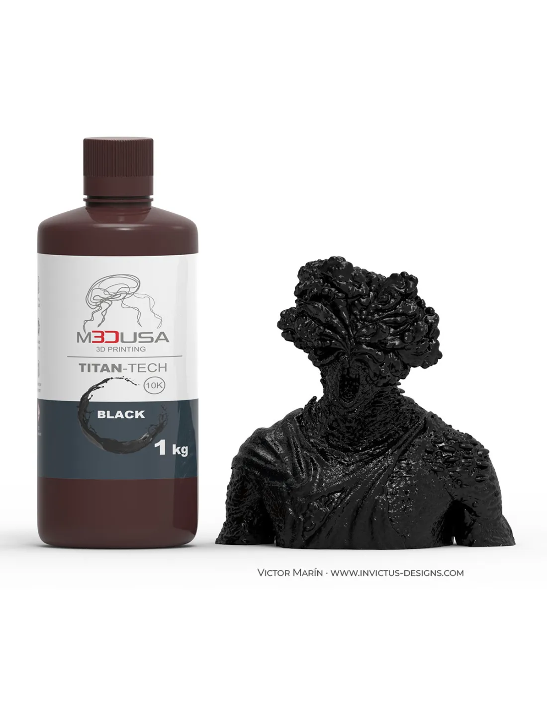 Die Titan-Tech Black ist ein vielseitiges Harz für Projekte, die hohe mechanische Belastbarkeit und Detailgenauigkeit erfordern. Die schwarze Farbe erleichtert die Inspektion feiner Details und ist besonders gefragt bei Anwendungen, bei denen ein dunkles Finish das gewünschte Endergebnis ist – ohne nachträgliche Lackierung.