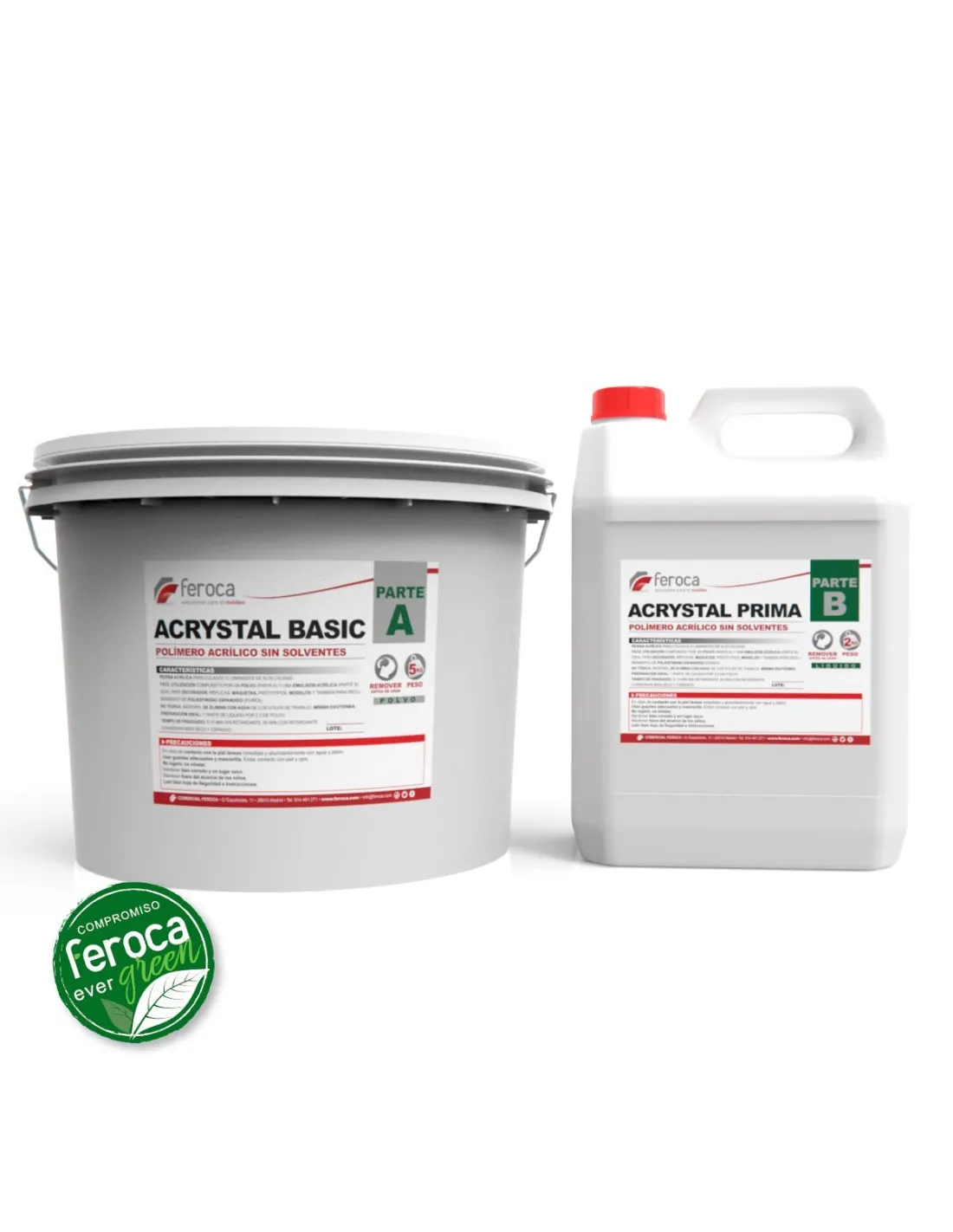 Acrystal Prima + Basic Crystal ist ein lösungsmittelfreies, geruchloses Zweikomponenten-Acrylharzsystem ohne gefährliche Inhaltsstoffe: eine flüssige Acrylемulsion (Acrystal Prima), die mit einem Mineralpulver (Basic Crystal) zu einer gieß- oder laminierbaren Paste gemischt wird. Es ist die sicherste Alternative zu Polyester- oder Polyurethanharzen, wenn du in Räumen ohne erzwungene Belüftung, in Bildungseinrichtungen oder in künstlerischen Produktionsstudios arbeitest, wo Nulltoxizität keine Option, sondern eine Anforderung ist.