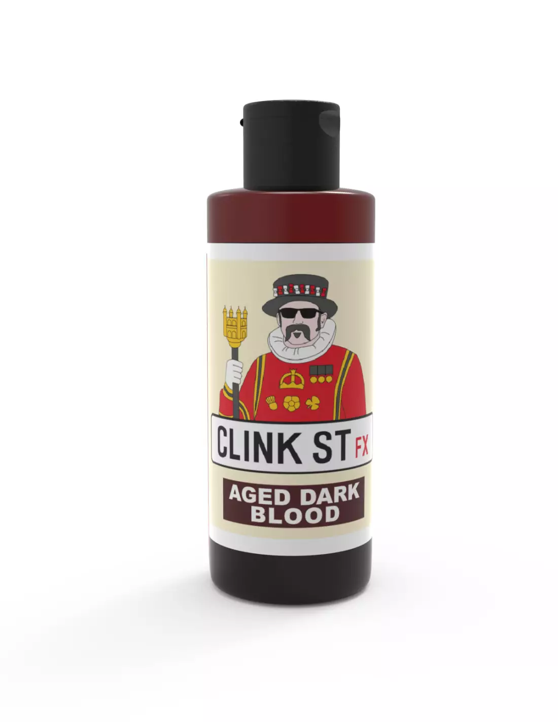 Das Aged Dark Kunstblut von Clink St FX ist ein flüssiges Kunstblut in dunklem, gealtertem Farbton, entwickelt für professionelle Make-up-Spezialeffekte. Seine glänzende und viskose Textur trocknet nicht, wodurch es während der gesamten Session auf Haut, Prothesen und Stoffen feucht und organisch aussieht. Ideal zur Darstellung alter Wunden, dunkler Blutgerinnsel, eingetrockneter Blutungen und jeglicher FX-Effekte mit nachgedunkeltem Blut für maximalen Realismus.