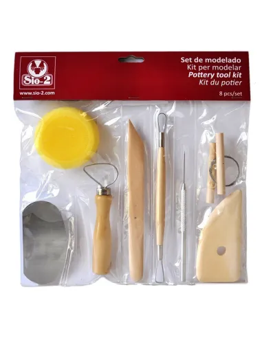 Das SIO-2 Modellier-Set vereint acht wesentliche Werkzeuge für die präzise und vielseitige Bearbeitung von Ton, Modellierwachs und ähnlichen Materialien. Ein vollständiges Kit für den Profi, der für jede Phase des Modellierens das richtige Werkzeug zur Hand haben muss – vom Grobabtragen bis zur Feinbearbeitung.