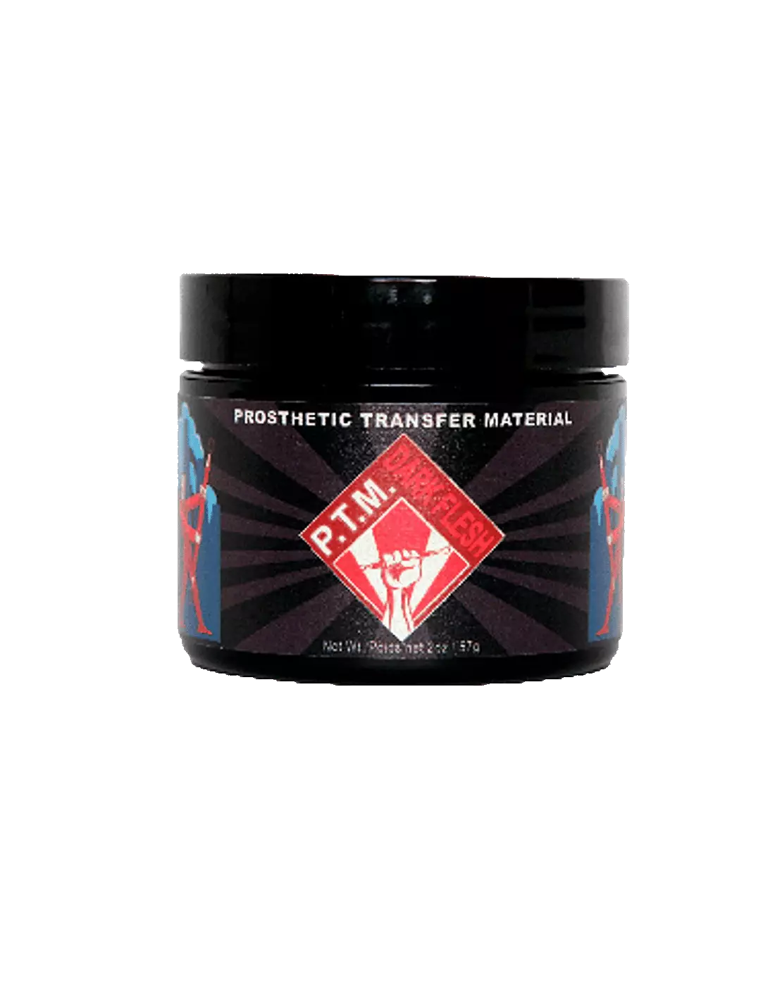 PTM Dark Flesh ist das Referenzmaterial für die sofortige Herstellung hochwertiger Prothesentransfers —Bondo Transfers, Pro-Bondo Transfers und Pros Aide Transfers— direkt aus dem Fläschchen. Formuliert von Christien Tinsley, der Schöpferin des Originalverfahrens, ist dieser dunkle Ton mit leicht rötlichem Unterton speziell dafür entwickelt, sich auf natürliche Weise in dunklere Hauttöne zu integrieren und ein überzeugendes, professionelles Ergebnis zu liefern.