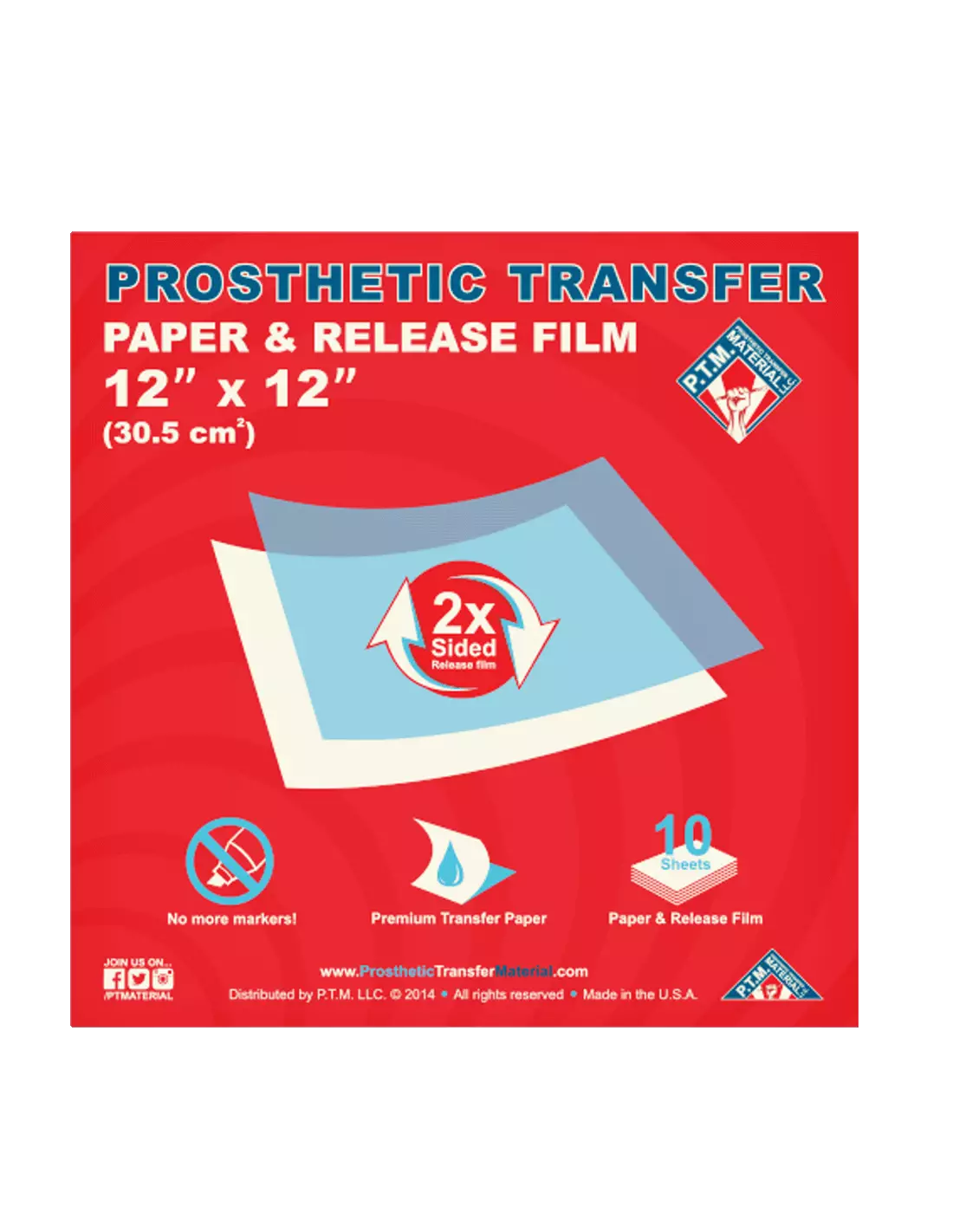 Dieses Papier ist für Spezialeffekt-Künstler, Film- und Fernsehmakeup-Artists sowie FX-Profis gedacht, die mit Prothesen und Transfers im großen Format präzise und schnell arbeiten müssen. Dank seiner großzügigen Größe können breite Körperbereiche auf einmal abgedeckt werden. Durch die doppelseitige Trennbeschichtung kann es als Trägermaterial für PTM Light Flesh und PTM Clear eingesetzt werden.