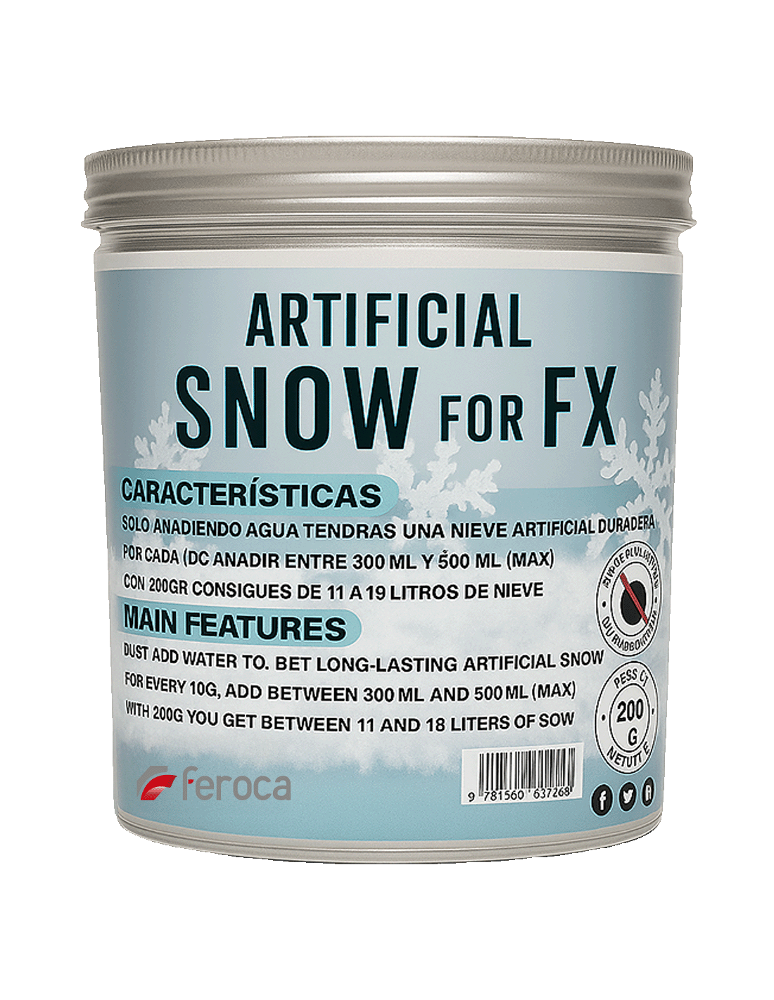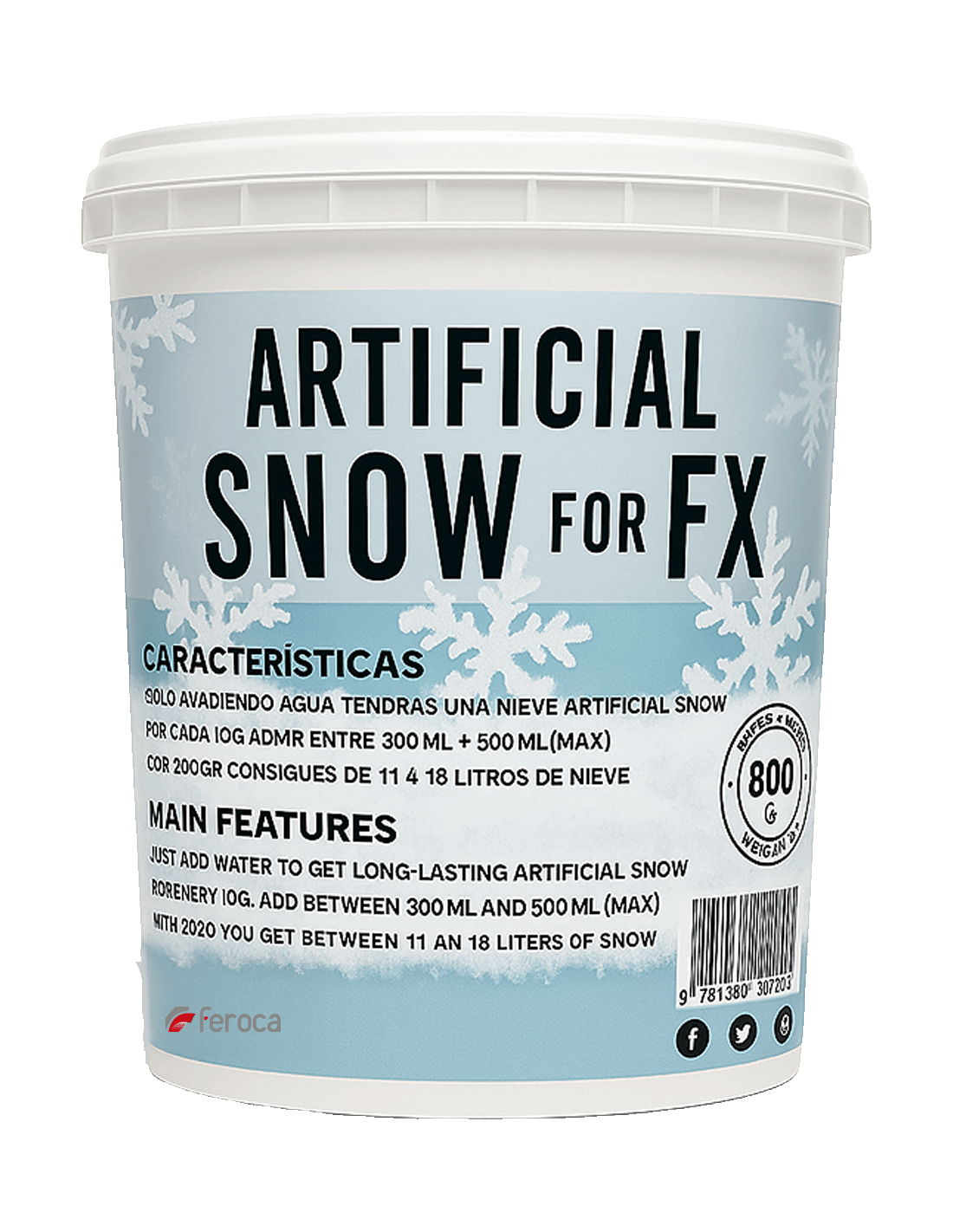 Lassen Sie sich von dem Effekt überraschen, den Sie bei der Herstellung dieses Kunstschnees erzielen werden. Nehmen Sie einfach das Kunstschneepulver, fügen Sie die 30- bis 50-fache Menge an Wasser hinzu, und Sie werden sehen, wie der Schnee wie von Zauberhand wächst. Diese Pulver werden aus modifiziertem Natriumpolyacrylat hergestellt.