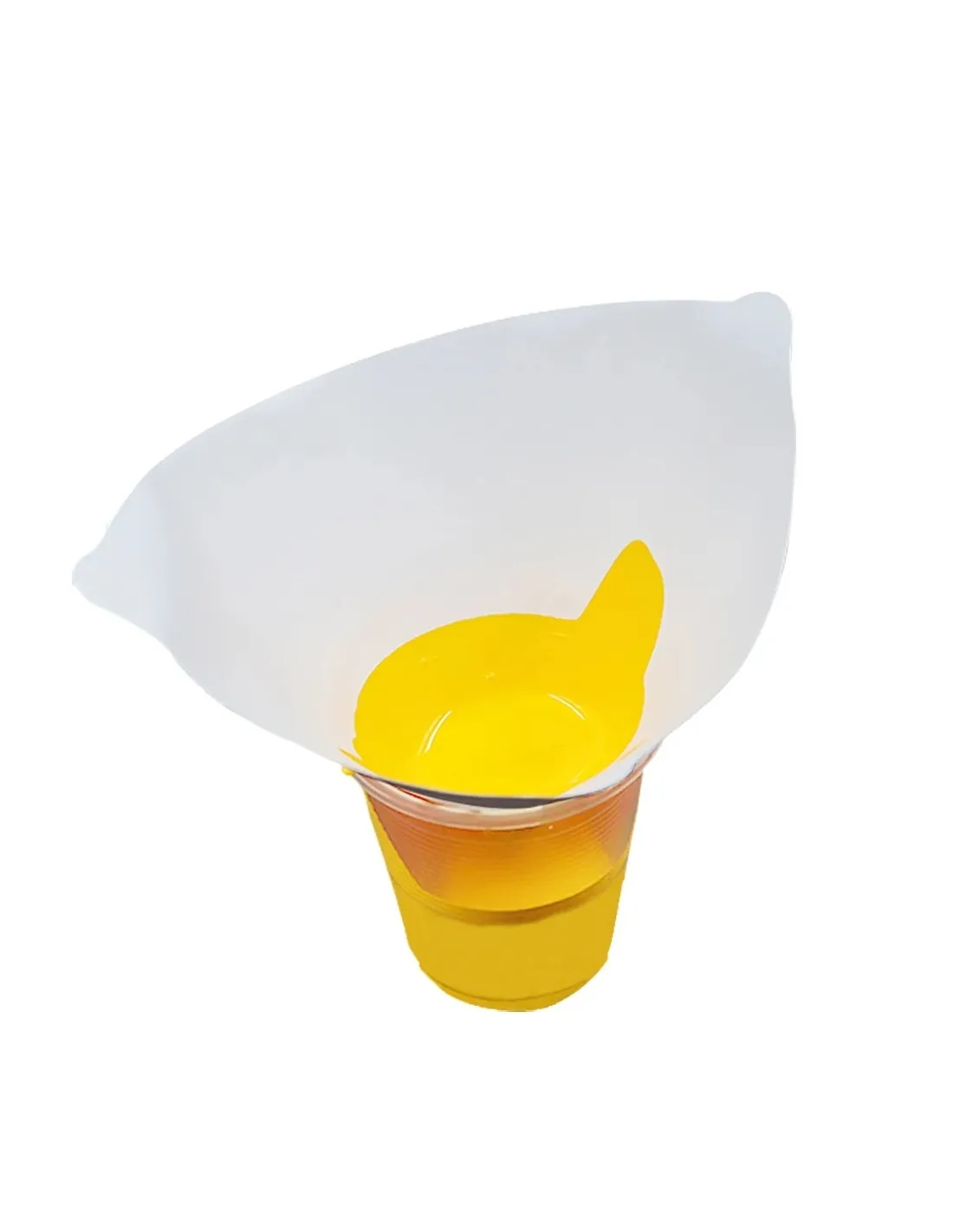 It is not strictly necessary, but it is recommended. You can place the filter directly over the mouth of the container if the diameter allows, or rest it in a standard funnel. For greater comfort when transferring from the tank, a casting ladle makes controlling the pour much easier.