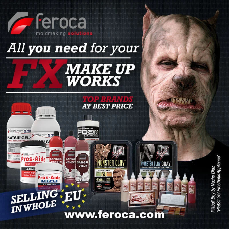 At the forefront of molding materials in Spain for over 40 years, Feroca continues to innovate and constantly add new products to its catalog, always seeking the best materials for molding, special effects, cosplay and sculpture. That's why we pursue partnerships with the key manufacturers in each sector, which has made us a distributor of leading brands: Polytek, Neill's Materials, Monster Makers, Jesmonite, Kryolan and many more.