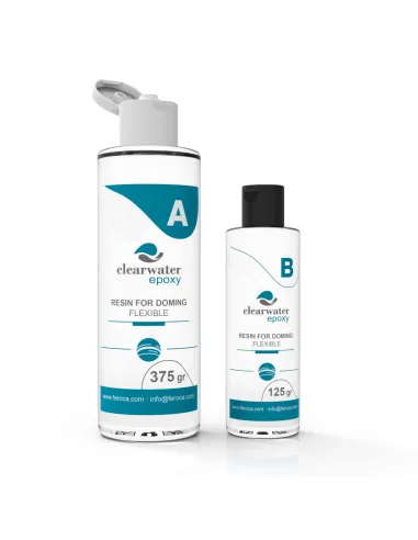 ClearWater Epoxi Doming Flexible is a two-component epoxy resin specifically formulated for the "resin dome" or doming technique: when applied to a flat surface, it forms a transparent convex dome that protects and enhances the object. With a Shore A60 hardness once cured, the result is flexible to the touch, impact-resistant and with high UV anti-yellowing resistance, making it the professional choice for series production of magnets, keyrings, pins and decorative items.