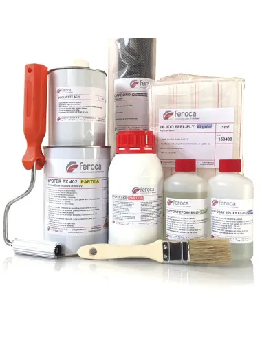 The Carbon/Epoxy Laminating Kit from Feroca brings together in a single package everything you need to get started making laminated parts with carbon fiber and epoxy resin. Designed for those who want professional results from their very first project, it includes laminating resin, carbon fabric, finishing top coat and the essential tools for a clean, controlled process.