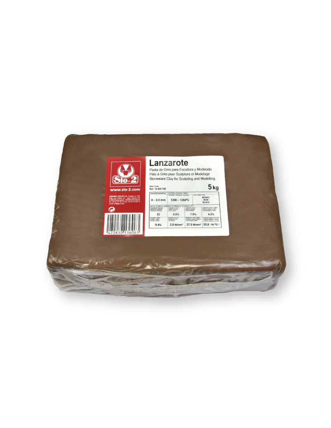 Sio-2 Gres Lanzarote is a fine-grained stoneware clay specially formulated for high-definition sculpture and modelling. Its 0–0.5 mm grog guarantees a very workable texture that allows precise detail reproduction without sacrificing the structural integrity of the piece. It is the go-to choice for professional sculptors and ceramicists who need a stoneware clay with outstanding plasticity in a ready-to-use 5 kg container.