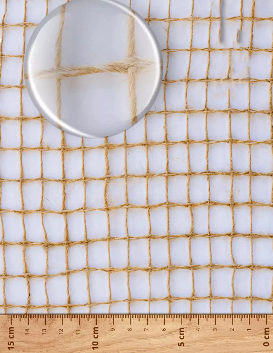 Burlap is a natural jute fabric weighing 82 g/m² with an open 4 mm weave that makes it particularly effective as a structural reinforcement material. Combined with plaster or resins, it provides mechanical strength and cohesion to surfaces that would otherwise be fragile. It is lightweight, easy to handle and 100% natural, making it the most economical and versatile solution for mother moulds, shells and lightweight scenic structures.