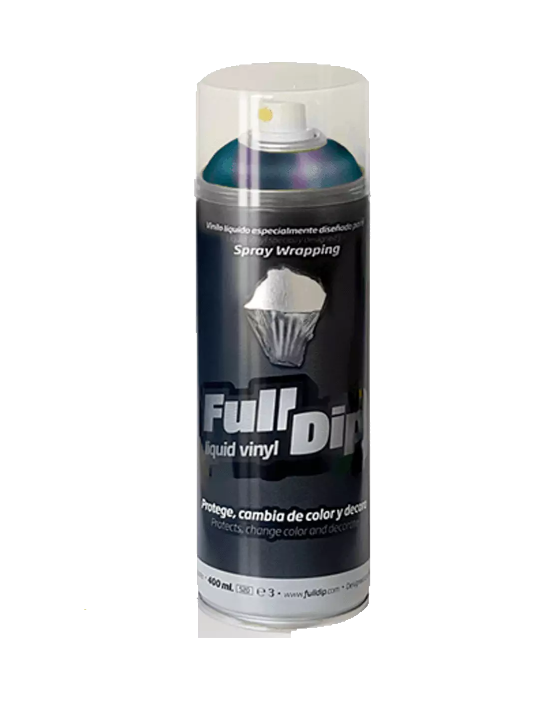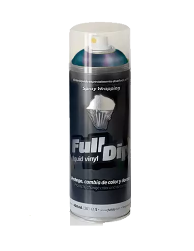 FullDip Liquid Vinyl Camaleón is a liquid vinyl spray that changes colour depending on the viewing angle and light, creating a spectacular finish on any surface. Flexible, UV and water resistant, it is applied in thin coats over a prior black base and can be removed without damaging the substrate when no longer needed.
