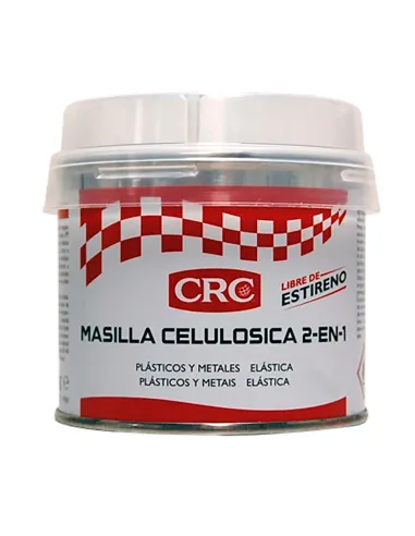 CRC Masilla Celulósica is a fine-finish polyester filler formulated for surface repairs that require a smooth, even finish that sands easily. It comes in a 250 g container with the catalyst already included, ready to use without needing to purchase additional components. It is the standard choice for fine touch-ups before painting or lacquering on bodywork, plastics, wood and metal.