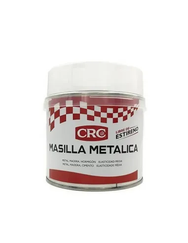 CRC Masilla Metálica is a two-component polyester repair filler loaded with aluminium pigments, formulated without styrene, asbestos or silicone. Designed to level, fill and restore metal, wood and concrete surfaces with real chemical and thermal resistance, leaving the area ready to sand in just 20–30 minutes at room temperature. If you need a technically serious filler for demanding workshop or on-site work, this is the option.