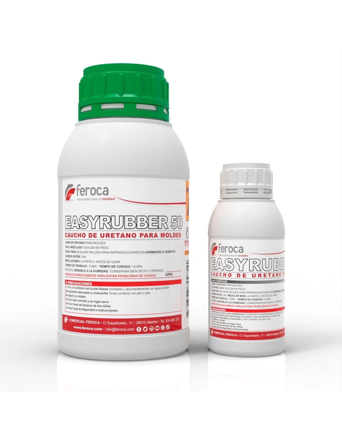 Stored in a dry, cool place with containers properly sealed, EasyRubber 50 retains its properties for approximately 12 months from the date of manufacture. Once opened, it is essential to seal containers airtight after each use, especially component B (isocyanate), which absorbs moisture from the air and can degrade within a few weeks if left exposed.