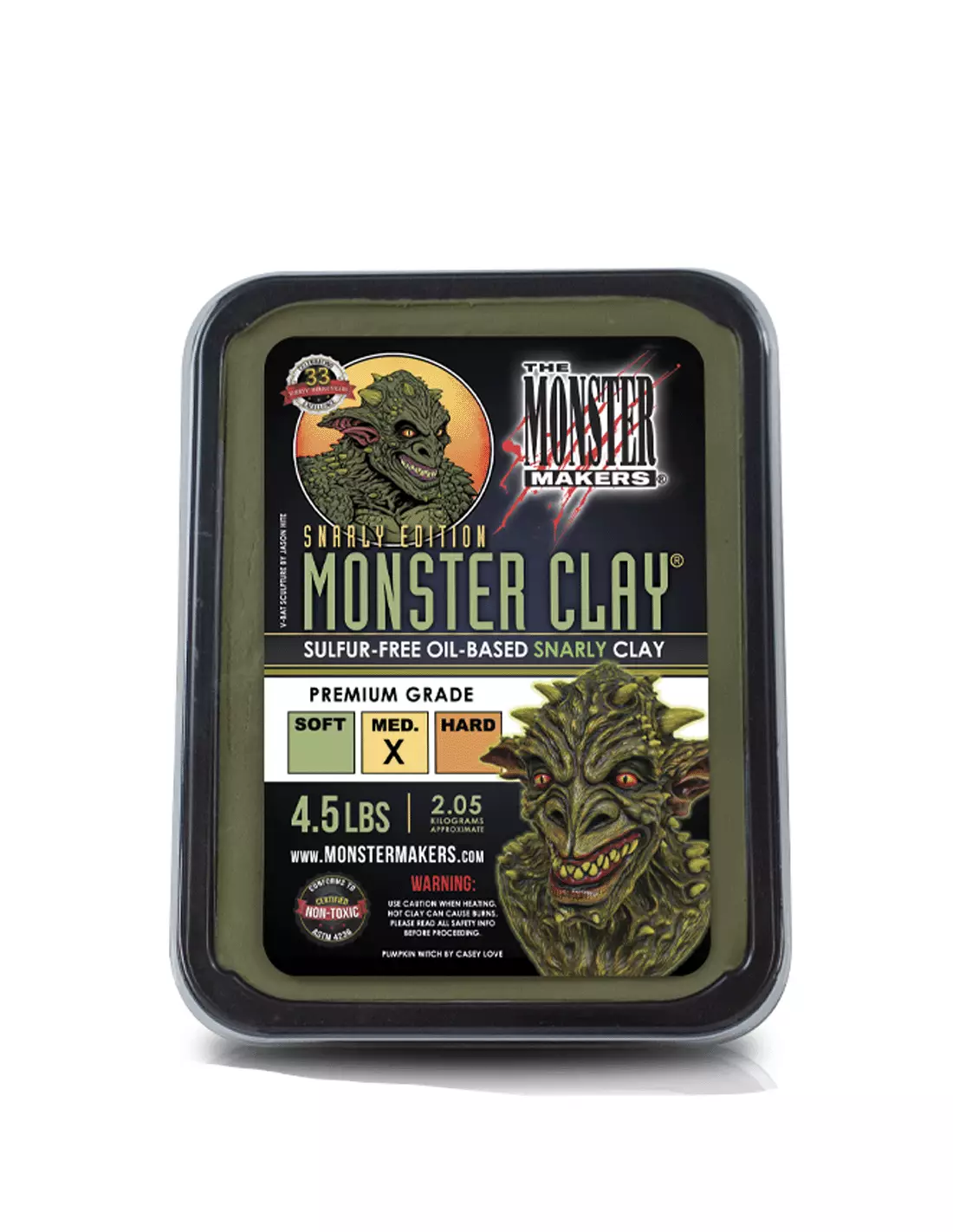 Monster Clay 33rd Anniversary "Snarly" Medium is the go-to choice of professional sculptors, special effects artists and prosthetics makers. Its medium hardness offers the perfect balance between workability and the ability to retain fine details. Being sulfur-free, you can apply platinum silicone directly onto the sculpture with no risk of cure inhibition.