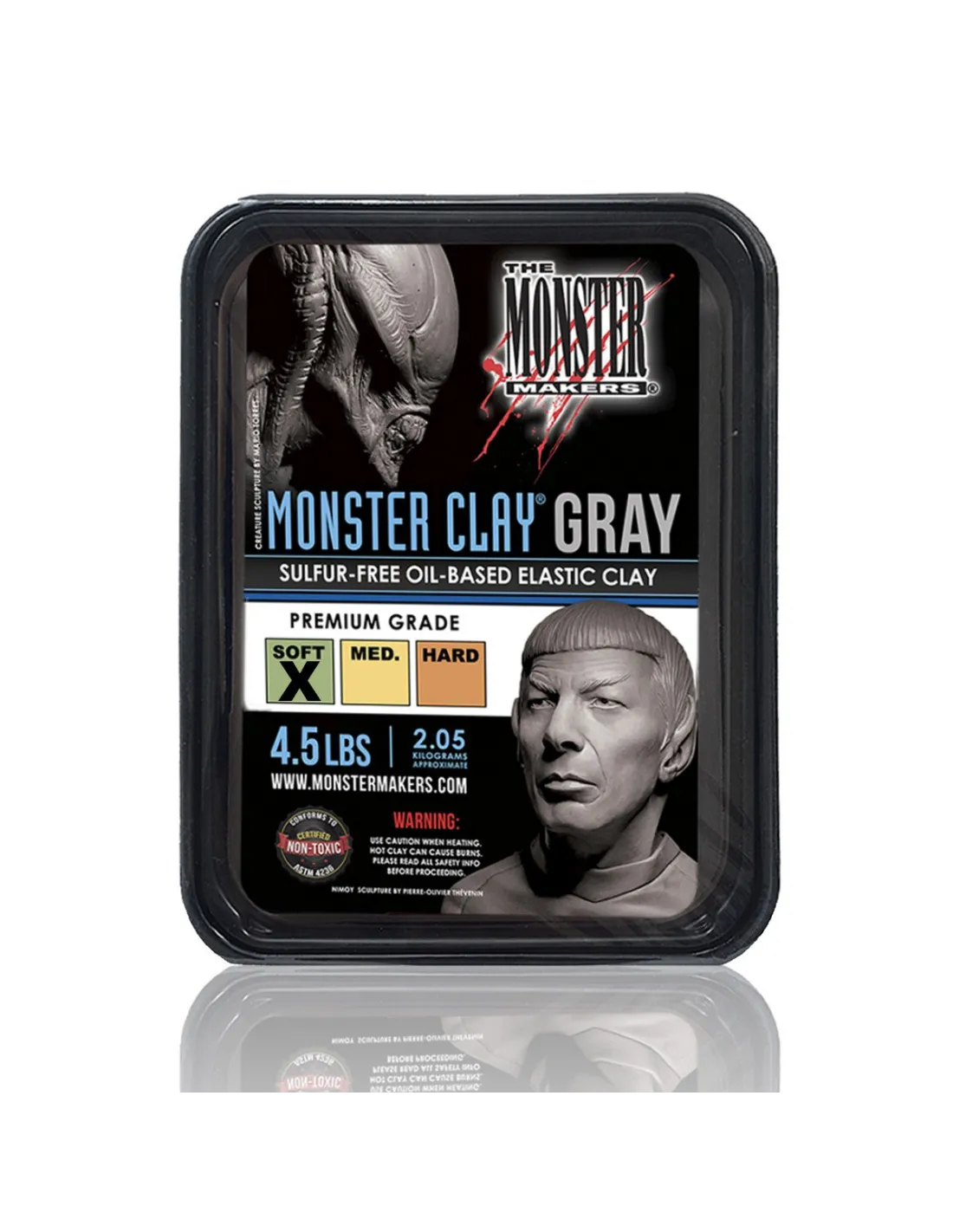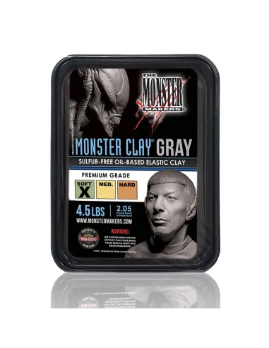 Monster Clay Gray Soft is a professional oil-water based modelling clay, in grey colour and soft hardness, designed for figurative sculpture, special effects and high-definition prototyping. Sulfur-free and formulated with food-grade components, it is directly compatible with platinum silicones and can be reused indefinitely without losing its properties.
