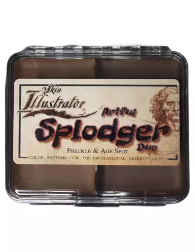 The Skin Illustrator On Set Splodger Duo is a dual-cell alcohol-activated makeup palette with two colors specifically formulated to simulate organic skin characteristics: Freckles and Age Spot. Designed for on-set use, it is compatible with natural skin, silicone and latex, and offers exceptional adhesion when correctly activated.