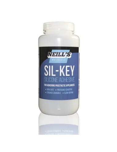 Sil-Key es un adhesivo de silicona de alta resistencia, sensible a la presión y con alto contenido en sólidos, suspendido en un solvente de grado cosmético de máxima seguridad. Está formulado específicamente para la aplicación de prótesis de silicona y látex en efectos especiales y caracterización, ofreciendo una adherencia fiable, duradera y segura sobre piel.