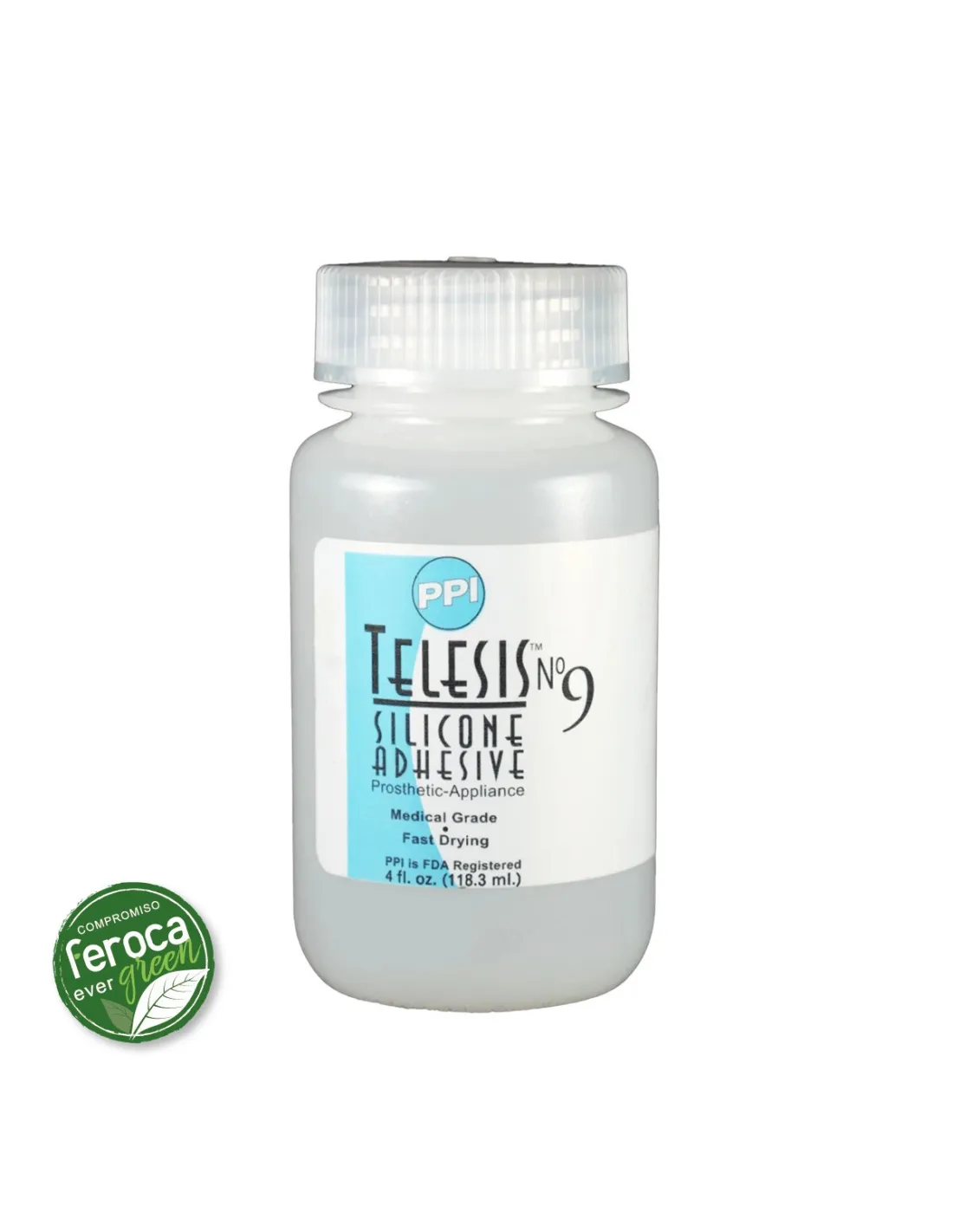 Telesis 9 es el adhesivo de silicona de grado médico más avanzado y rápido de la línea Telesis, desarrollado por PPI (Premiere Products Inc.), fabricante registrado por la FDA. Diseñado para adherir prótesis de silicona y látex directamente sobre la piel, destaca por su fuerza excepcional, durabilidad y secado ultrarrápido, incluso en zonas de alta movilidad como contornos de ojos y boca.
