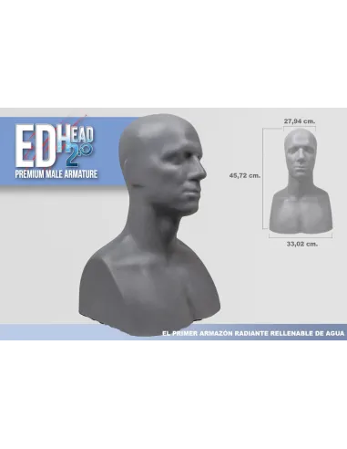 El Ed Head H2.0 es un armazón anatómico masculino a tamaño real fabricado en plástico de alta densidad, diseñado específicamente para escultura profesional con plastilinas de base cera y fabricación de máscaras para efectos especiales. Su sistema RAD (Radiant Assisted Demold) convierte el armazón en un recipiente de agua caliente que ablanda la plastilina desde el interior, haciendo que el desmoldeo sea rápido, limpio y sin dificultades. Si buscas una base de trabajo duradera, precisa y pensada para el trabajo real de taller, este es el armazón.