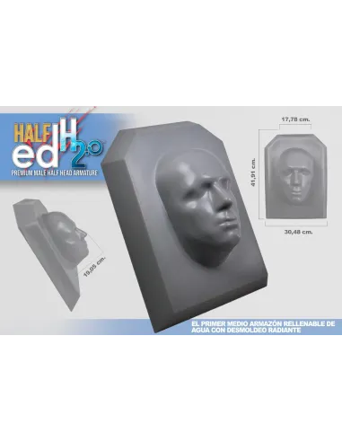 El ED HEAD H2.0 Media Máscara es un armazón anatómico masculino de media cara diseñado específicamente para escultura de personajes, fabricación de máscaras de efectos especiales y producción de moldes. Fabricado en plástico de alta densidad con tecnología RAD (Radiant Assisted Demold), permite rellenarlo con agua caliente para ablandar la plastilina desde el interior y facilitar el desmoldeo sin dañar el molde ni la escultura.