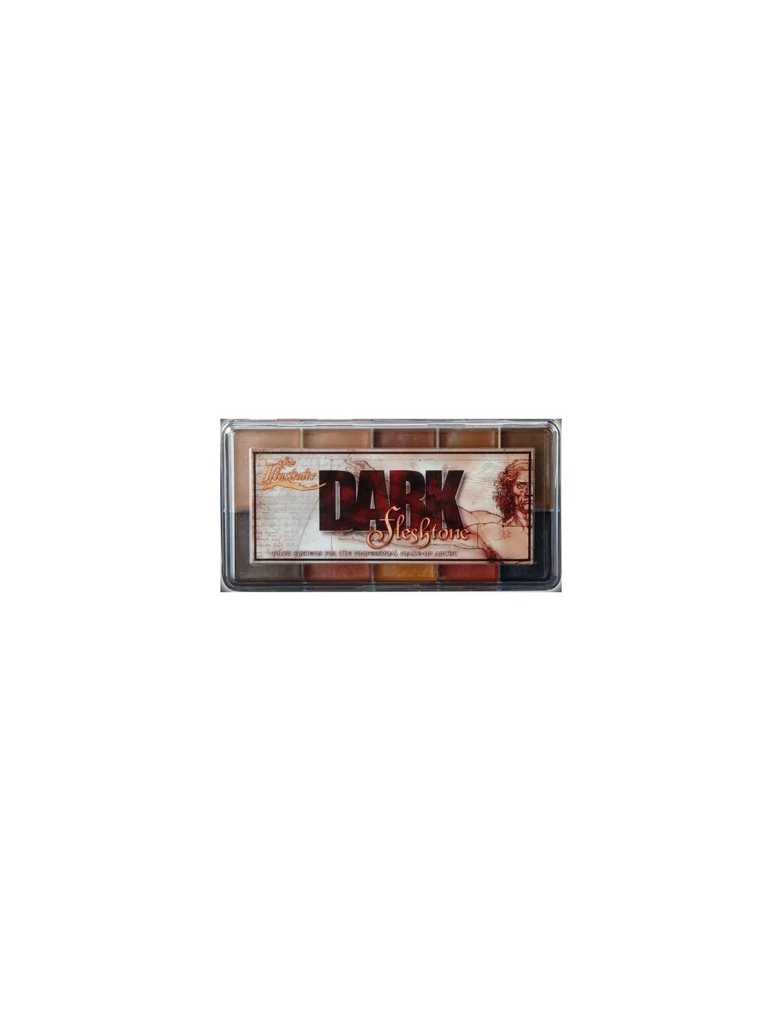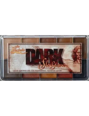La Skin Illustrator Dark Fleshtone Palette es una paleta de maquillaje al alcohol de 10 colores pensada para cubrir los tonos de piel más oscuros y medios. Diseñada como complemento directo de la Fleshtone Palette, combinada con ella o con la Skin Illustrator Flesh Tone Palette, permite reproducir virtualmente cualquier tono de piel humana. Compatible con piel, silicona y látex, con una cobertura y adherencia excepcionales.