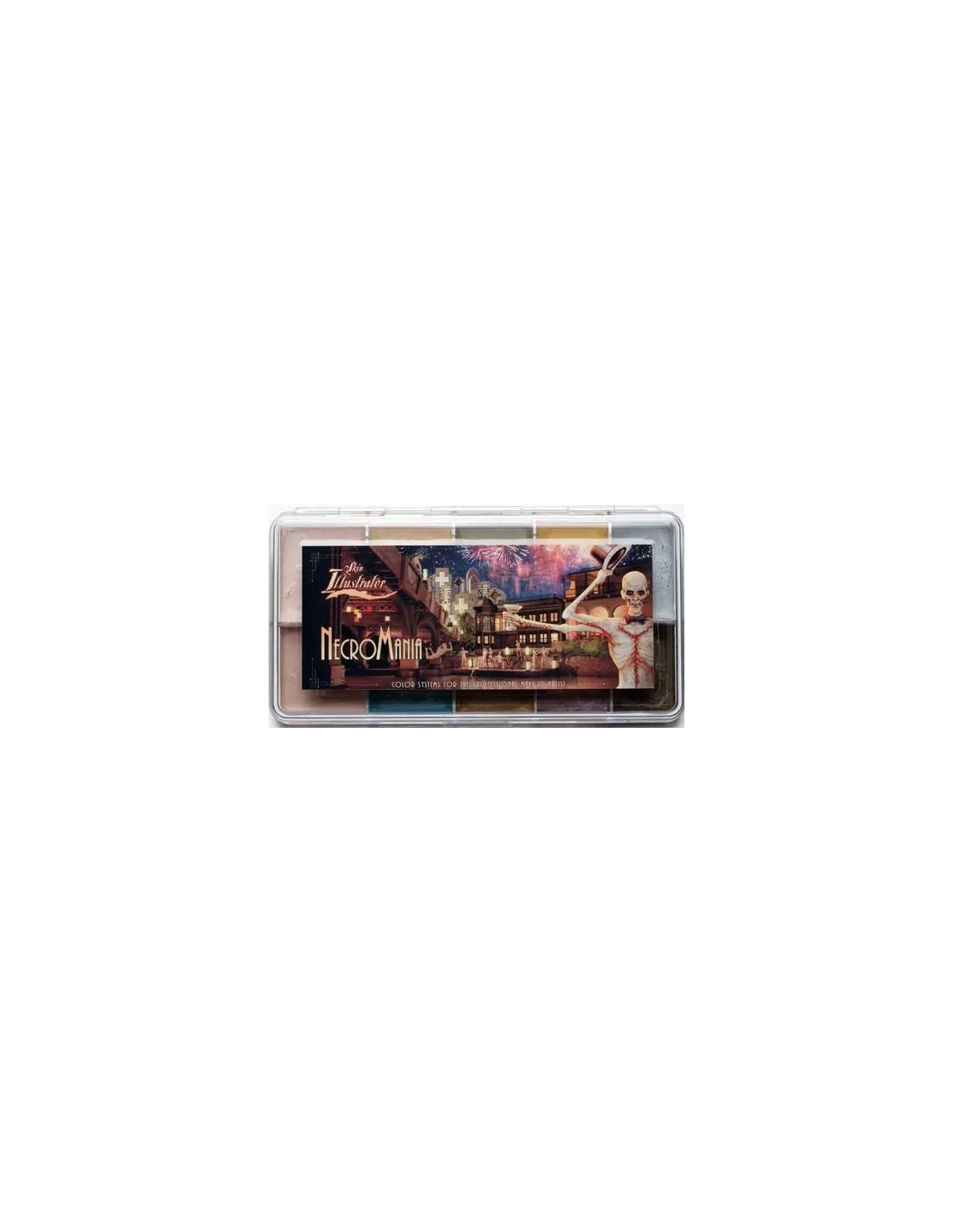 La Skin Illustrator Necromania Palette es una paleta de maquillaje al alcohol de 10 colores diseñada específicamente para recrear efectos post-mortem: cadáveres, no muertos, cuerpos en descomposición, lividez y muerte por congelación. Con una cobertura excepcional y una adherencia duradera sobre piel, silicona y látex, es una herramienta de referencia para el maquillador de efectos especiales que trabaja en producciones de cine, televisión, teatro o eventos de terror.