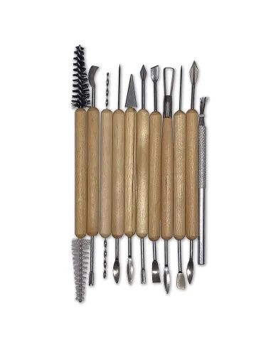 Un set completo de 11 herramientas de modelado diseñadas para cubrir todas las etapas del proceso escultórico: desde el desbaste inicial hasta el refinado de detalles. Compatibles con plastilinas profesionales, arcillas naturales y masillas poliméricas, con la ventaja de incluir una funda protectora que mantiene el set limpio y organizado en el taller.