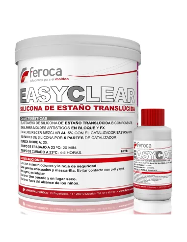 Sí. EASYCLEAR es compatible con resinas de poliuretano, poliéster y epoxi. Las siliconas de condensación en general son muy resistentes a estos materiales, y el molde actúa de por sí como desmoldeante natural en la mayoría de los casos. Para resinas epoxi en particular, se recomienda aplicar igualmente una capa de Ferosil V 32 para alargar la vida del molde.