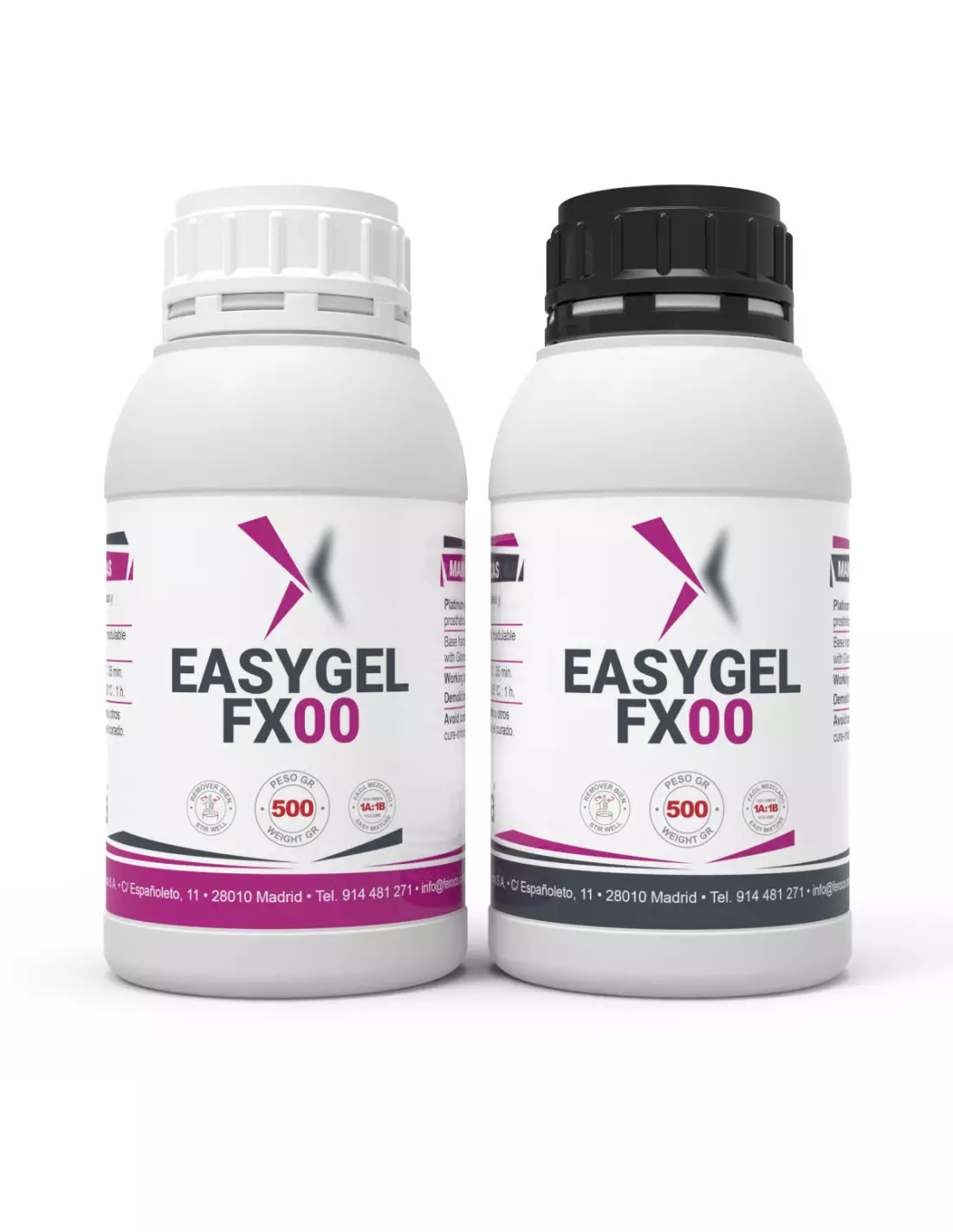 EasyGel FX00 es una silicona de platino (adición) ultrablanda Shore 00-30 formulada específicamente para prótesis de efectos especiales, anaplastología y piel sintética hiperrealista. Su fluidez controlada permite reproducir bordes ultrafinos que se difuminan con la piel real, y su formulación translúcida la hace ideal para pigmentar con pigmentos específicos para silicona y conseguir tonos de piel completamente naturales.