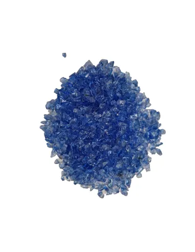 Cristaux de verre coloré concassé, taille 4-8 mm (1 cm pour le ton Iceberg). Compatibles avec les résines époxy, acryliques et polyuréthanes. Ponçables et polissables.