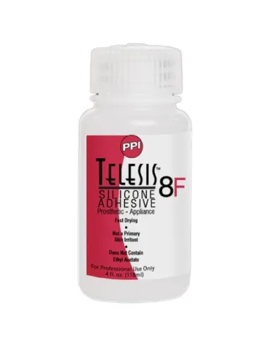 Telesis 8F (Fast) est un adhésif silicone de grade médical à séchage rapide, conçu pour fixer les prothèses en silicone et en latex dans les applications de maquillage FX et de prothèse faciale. Sa formule sensible à la pression offre une adhérence exceptionnelle même dans les zones à haute mobilité comme les yeux et la bouche, sans endommager le matériau prothétique.