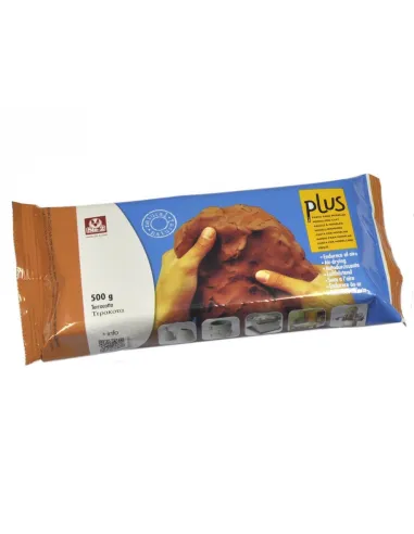 Argile naturelle Sio-2 PLUS Terracotta qui durcit à l'air sans cuisson. Haute plasticité, sans fissures, utilisable dès 3 ans. Formats de 500 g à 10 kg.
