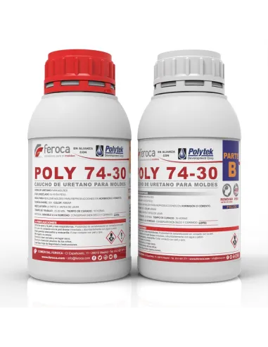 Le Poly 74-30 est un caoutchouc de polyuréthane de coulée de dureté Shore A30, conçu pour la fabrication de moules flexibles à haute production. Son mélange à parts égales, son large temps de travail et son excellente compatibilité avec le béton et le ciment en font une référence solide pour les ateliers de reproduction architecturale, de sculpture et d'ornementation.