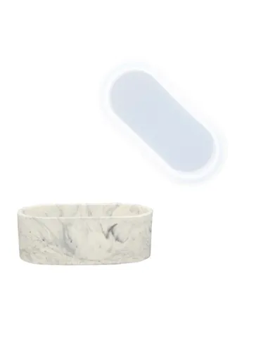 Moule en silicone de platine en forme de pot ovale, conçu pour travailler avec des résines acryliques de type Jesmonite ou Acrystal. Ses dimensions de 10,3 x 5,5 x 3,7 cm le rendent parfait pour créer des pièces décoratives avec des pigments et des charges, en obtenant des effets de veinure, marbre ou pierre. Le matériau silicone garantit un démoulage propre et sans effort, même lors de coulées avec des granulats ou des pigments en pâte.