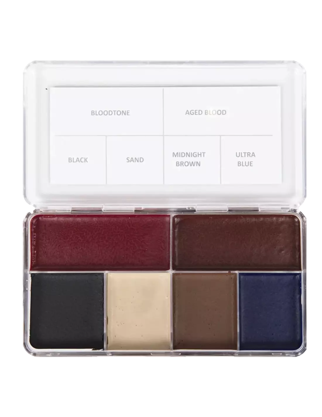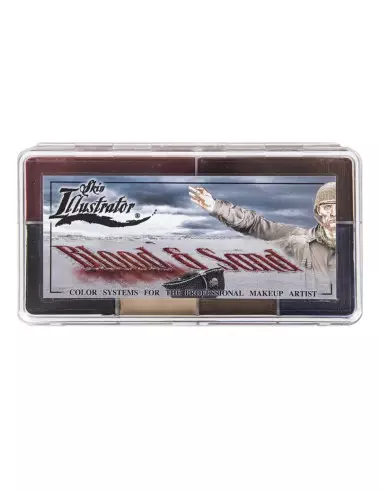 Skin Illustrator Blood and Sand est une palette de maquillage haute couvrance activée à l'alcool, conçue spécifiquement pour recréer des combinaisons réalistes de sang et de saleté dans les effets spéciaux de cinéma, télévision et théâtre. Ses 6 couleurs —Blood Tone, Aged Blood, Black, Sand, Midnight-Brown et Ultra Blue— offrent une résistance et une tenue exceptionnelles sur peau, silicone et latex.