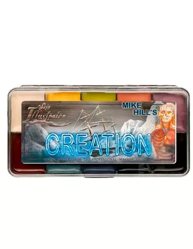 La Skin Illustrator Palette Mike Hill's Creation est une collection exclusive de 6 couleurs développée en collaboration avec Mike Hill, chef du département effets de maquillage prothétique de Frankenstein de Guillermo del Toro. Chaque teinte est pensée pour travailler sur prothèses et peau avec la précision et le caractère qu'exige le maquillage FX cinématographique : profondeur, volume et transitions naturelles qui tiennent sous caméra.