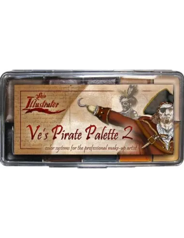 La palette Ve's Pirate 2 de Skin Illustrator est une collection de 10 encres à l'alcool conçue à l'origine par Ve Neill pour le film "Pirates des Caraïbes : Le Secret du Coffre Maudit". Elle offre une couverture exceptionnelle et une résistance supérieure sur peau, silicone et latex, avec une gamme de couleurs spécifique pour les caractérisations fantaisie, le vieillissement et les effets d'usure extrême.
