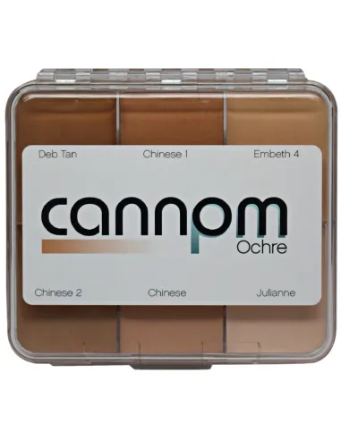 La palette Cannom Ochre est idéale pour les caractérisations nécessitant des tons chauds, bronzés et des teintes de peau méditerranéennes, asiatiques ou vieillis. Elle est particulièrement utile pour les effets de vieillissement (où les ocres et les bronzés sont fondamentaux pour simuler les taches et les changements cutanés), pour les caractérisations d'époque et pour tout projet où l'intégration réaliste entre la prothèse et la peau est critique.