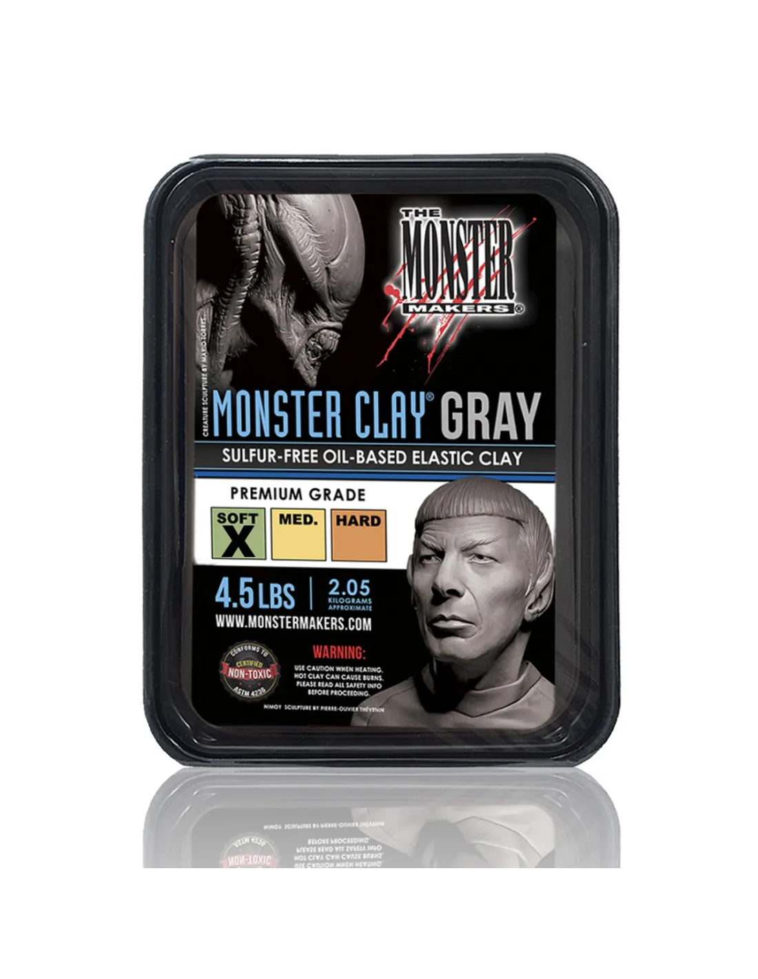 Monster Clay Gray Soft est une pâte à modeler professionnelle à base huile-eau, de couleur grise et de dureté souple, conçue pour la sculpture figurative, les effets spéciaux et le prototypage haute définition. Sans soufre et formulée avec des composants de qualité Food Safe, elle est directement compatible avec les silicones de platine et peut être réutilisée indéfiniment sans perdre ses propriétés.