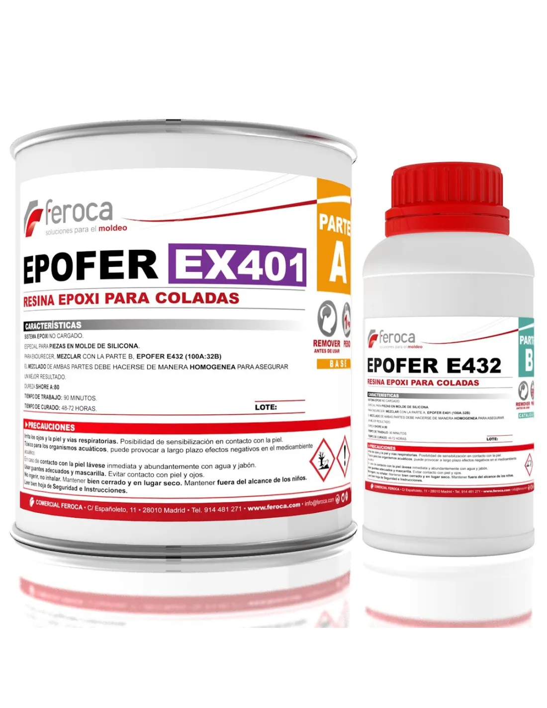 L'Epofer EX401+E432 est compatible avec les moules en silicone (ne nécessitent pas d'Agent de libération), les moules en polyuréthane et les moules rigides en époxy ou polyester (qui nécessitent un Agent de libération). Évitez les moules en matériaux poreux non scellés, car la résine peut adhérer ou pénétrer dans le support.