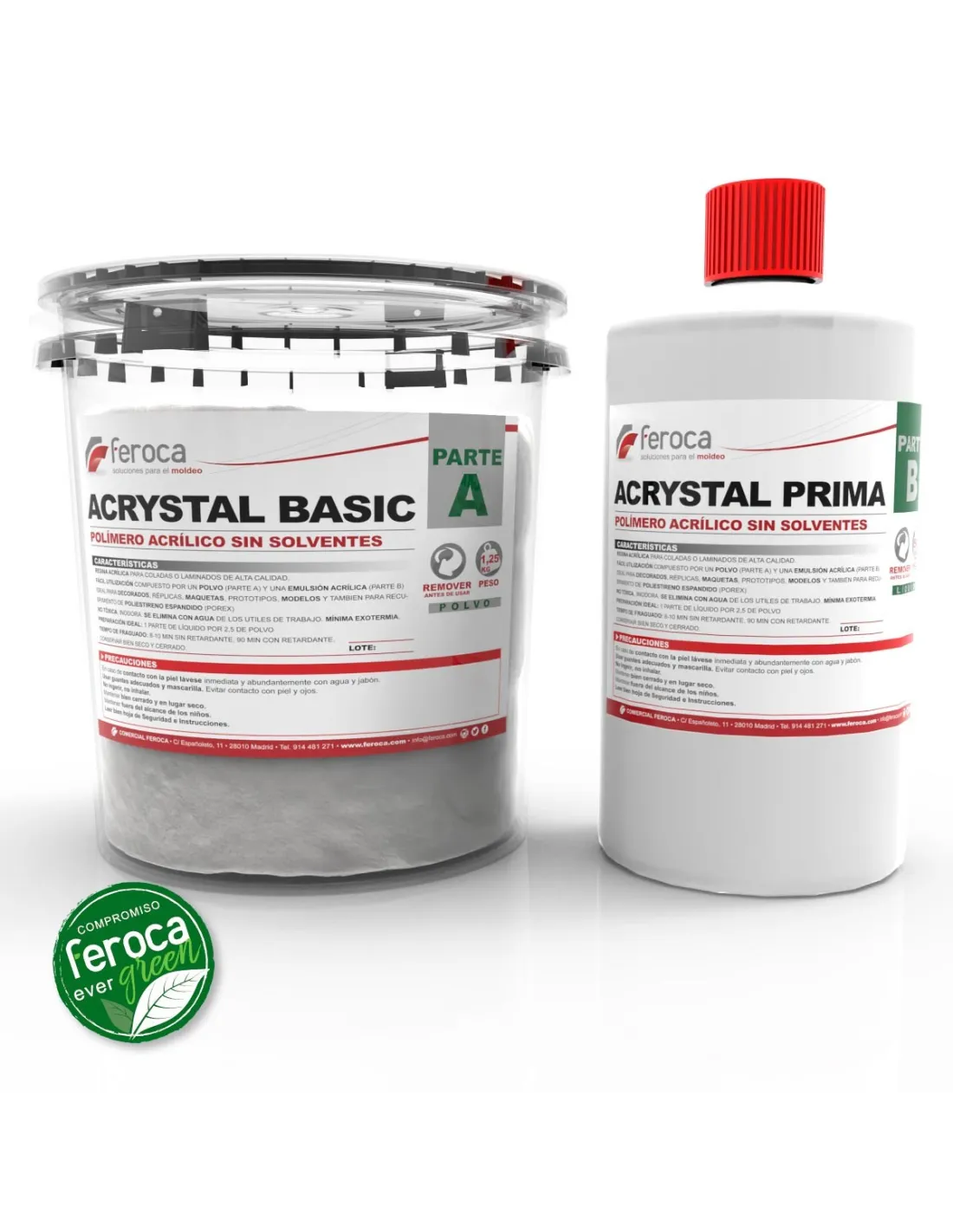 Acrystal Prima + Basic Crystal est un système bicomposant de résine acrylique sans solvants, sans odeur et sans composants dangereux : une émulsion acrylique liquide (Acrystal Prima) qui se mélange à une poudre minérale (Basic Crystal) pour obtenir une pâte coulable ou laminable. C'est l'alternative la plus sûre aux résines polyester ou polyuréthane lorsque vous travaillez dans des espaces sans ventilation forcée, des environnements éducatifs ou des ateliers de production artistique où la toxicité zéro n'est pas une option mais une exigence.