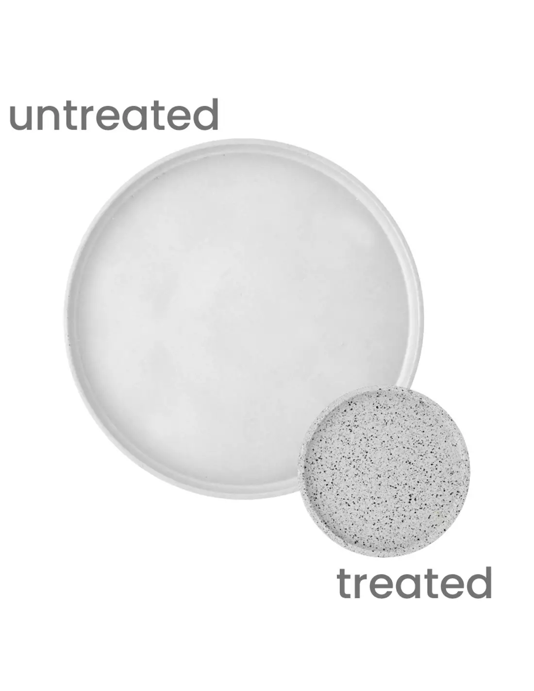 L'AC730 intègre des additifs décoratifs et des pigments en poudre qui donnent une finition type pierre poreuse. Pour renforcer l'effet minéral et homogénéiser la surface, appliquez un nettoyant pour briques dilué ou une gravure acide après le démoulage. Si vous souhaitez une teinte personnalisée, ajoutez des pigments Jesmonite dans le liquide avant de mélanger : ils sont compatibles et n'altèrent pas les propriétés mécaniques du système. Pour les pièces d'extérieur, protégez la surface avec un agent d'étanchéité hydrofuge adapté aux matériaux cimenteux.