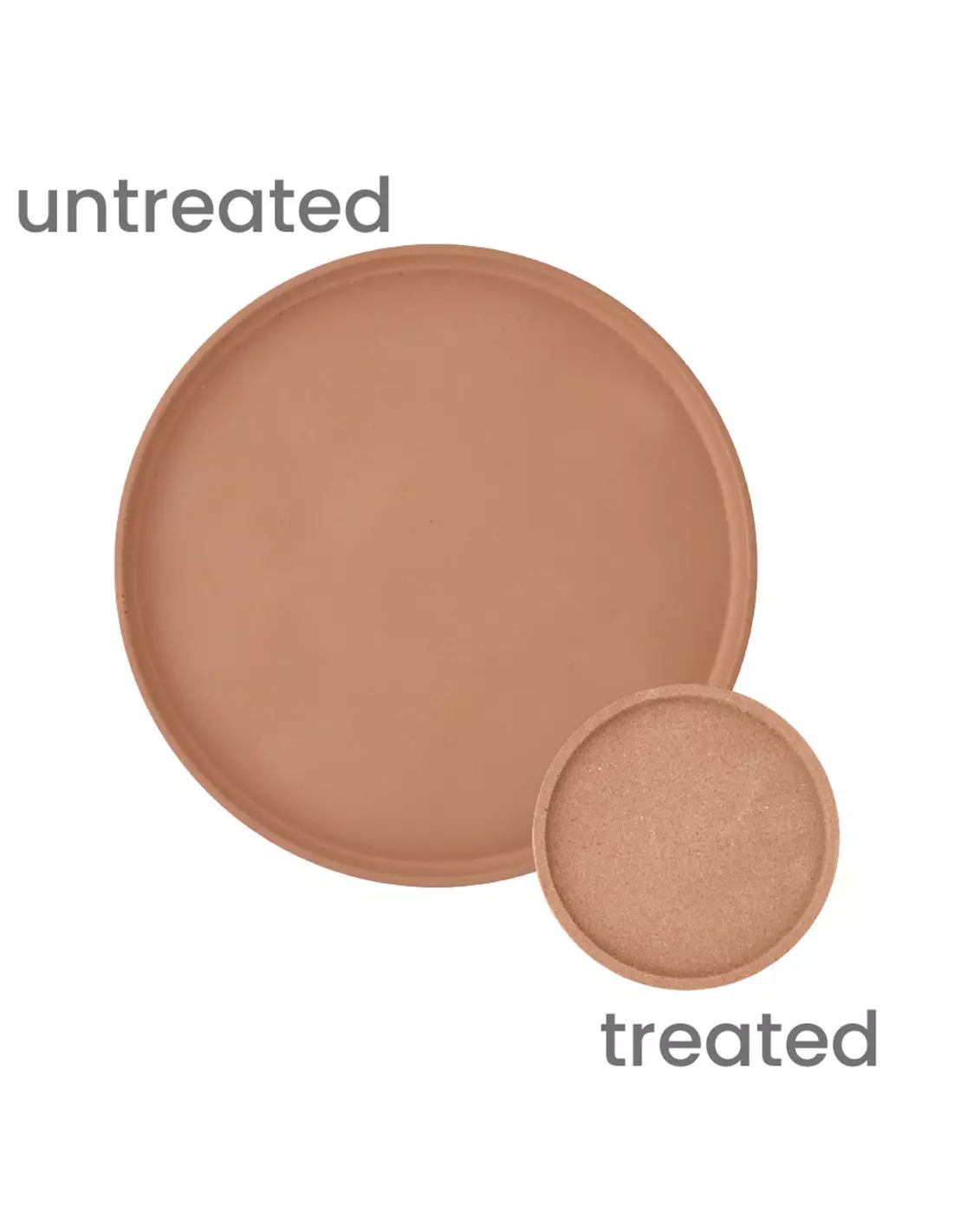 L'AC730 intègre des additifs décoratifs et des pigments en poudre qui donnent une finition type pierre poreuse. Pour renforcer l'effet minéral et homogénéiser la surface, appliquez un nettoyant pour briques dilué ou une gravure acide après le démoulage. Si vous souhaitez une teinte personnalisée, ajoutez des pigments Jesmonite dans le liquide avant de mélanger : ils sont compatibles et n'altèrent pas les propriétés mécaniques du système. Pour les pièces d'extérieur, protégez la surface avec un agent d'étanchéité hydrofuge adapté aux matériaux cimenteux.