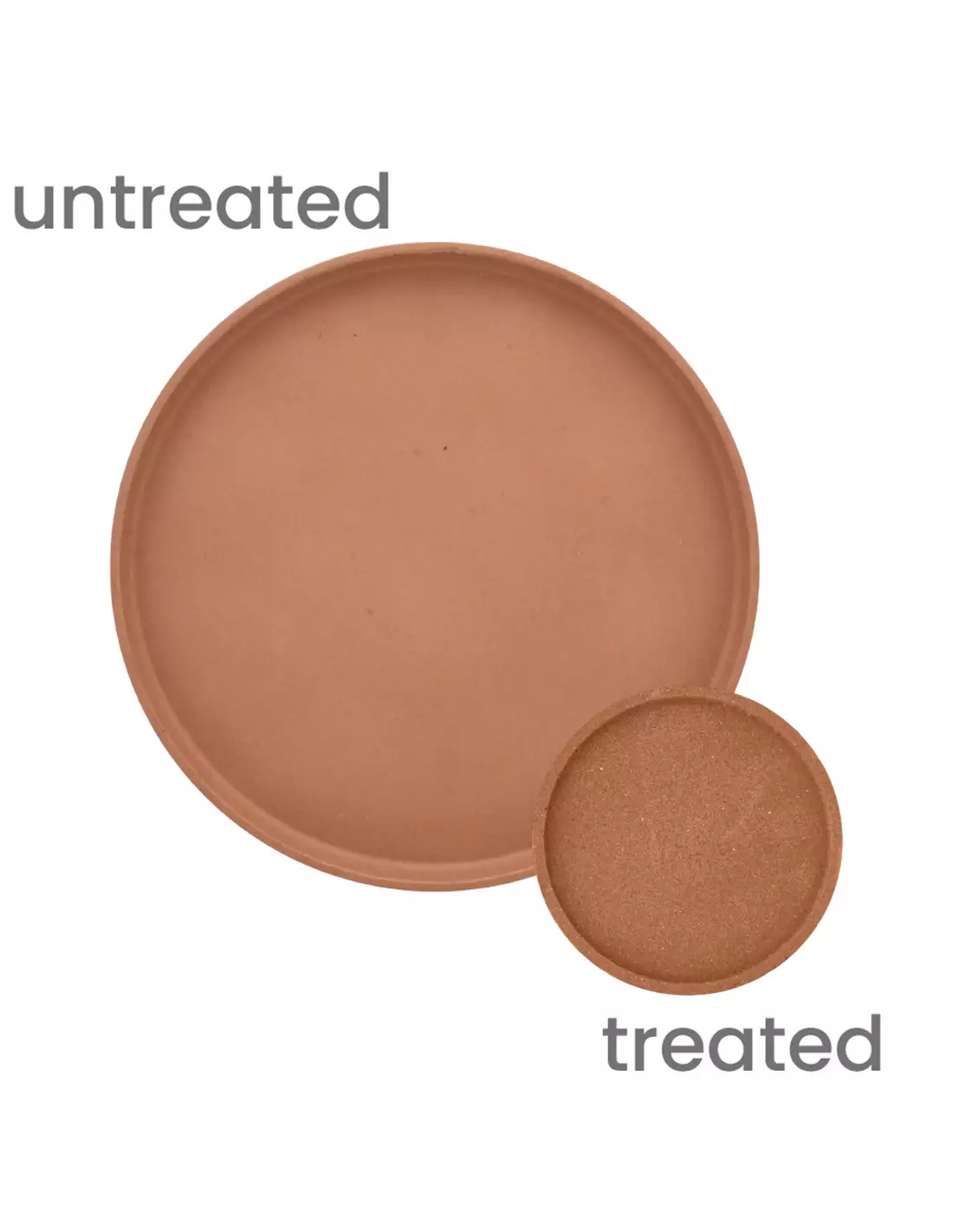 L'AC730 intègre des additifs décoratifs et des pigments en poudre qui donnent une finition type pierre poreuse. Pour renforcer l'effet minéral et homogénéiser la surface, appliquez un nettoyant pour briques dilué ou une gravure acide après le démoulage. Si vous souhaitez une teinte personnalisée, ajoutez des pigments Jesmonite dans le liquide avant de mélanger : ils sont compatibles et n'altèrent pas les propriétés mécaniques du système. Pour les pièces d'extérieur, protégez la surface avec un agent d'étanchéité hydrofuge adapté aux matériaux cimenteux.