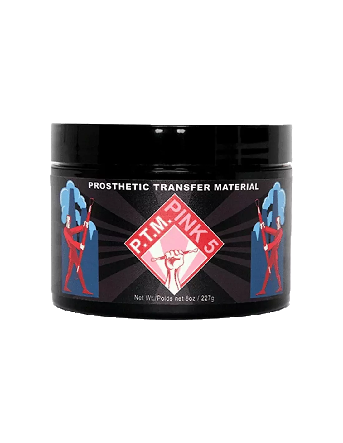 PTM Pink 5 est le matériau de transfert prothétique de référence dans l'industrie du maquillage d'effets spéciaux. Formulé par Christien Tinsley, la créatrice du processus original, ce ton rose spécifique apporte un sous-ton dermique réaliste qui donne à tout maquillage appliqué sur le transfert un aspect naturel et sain. Compatible avec presque tous les tons de peau caucasiens et foncés, il est devenu la couleur standard de la majorité des ateliers et plateaux de production professionnels.