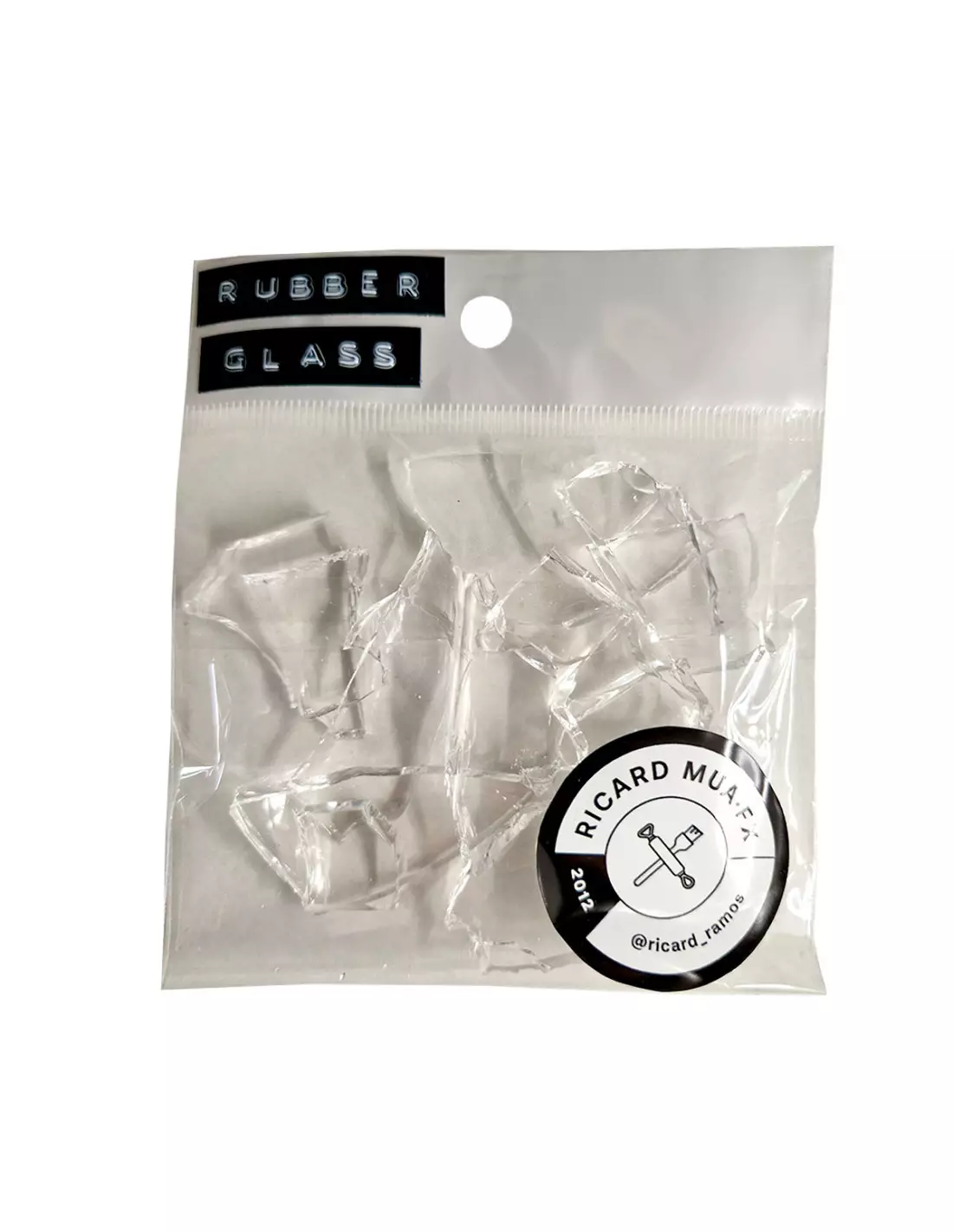 Rubber Glass est formulé pour être compatible avec le reste de la gamme Ricard MUA FX. Vous pouvez incorporer des fragments directement dans des prothèses en PTM Light Flesh pendant qu'elle est encore partiellement polymérisée, permettant aux éclats de s'intégrer dans la prothèse de façon permanente et réaliste. Utilisez PTM Clear pour les transitions de bord et pour coller des fragments sur la peau sans coutures visibles.