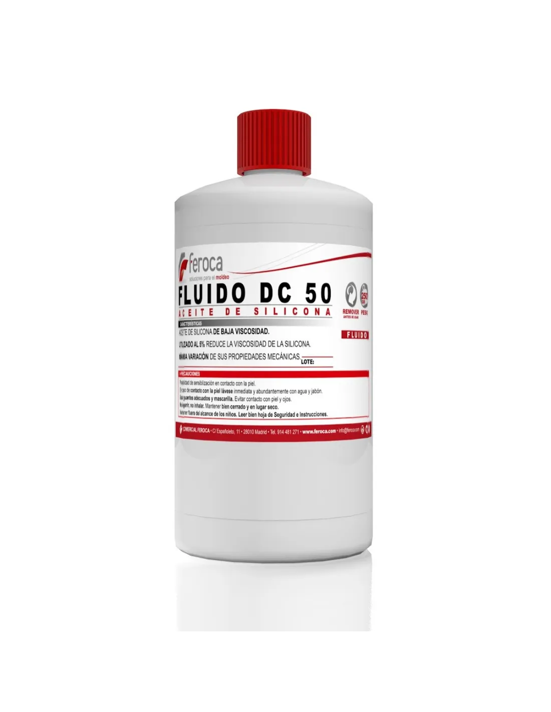 Il Fluido DC 50 è un olio siliconico a bassa viscosità progettato specificamente per ridurre la viscosità delle silicone liquide prima della vulcanizzazione. Aggiunto in proporzioni controllate —solitamente intorno al 5%— consente di migliorare la lavorabilità e la colata della miscela senza compromettere in modo apprezzabile le proprietà meccaniche finali dell'elastomero vulcanizzato. È un complemento da laboratorio semplice e molto efficace quando è necessario affinare la fluidità della propria silicone.