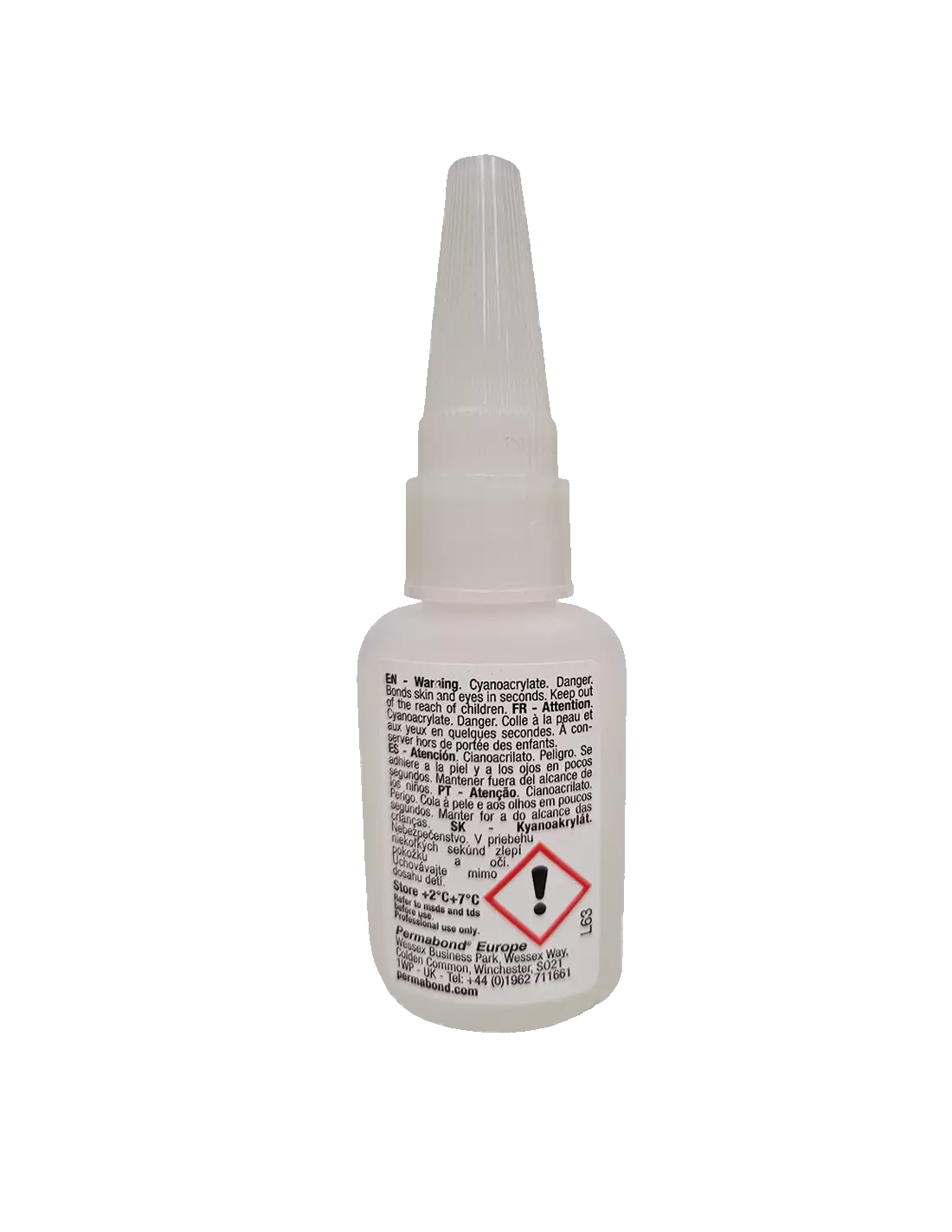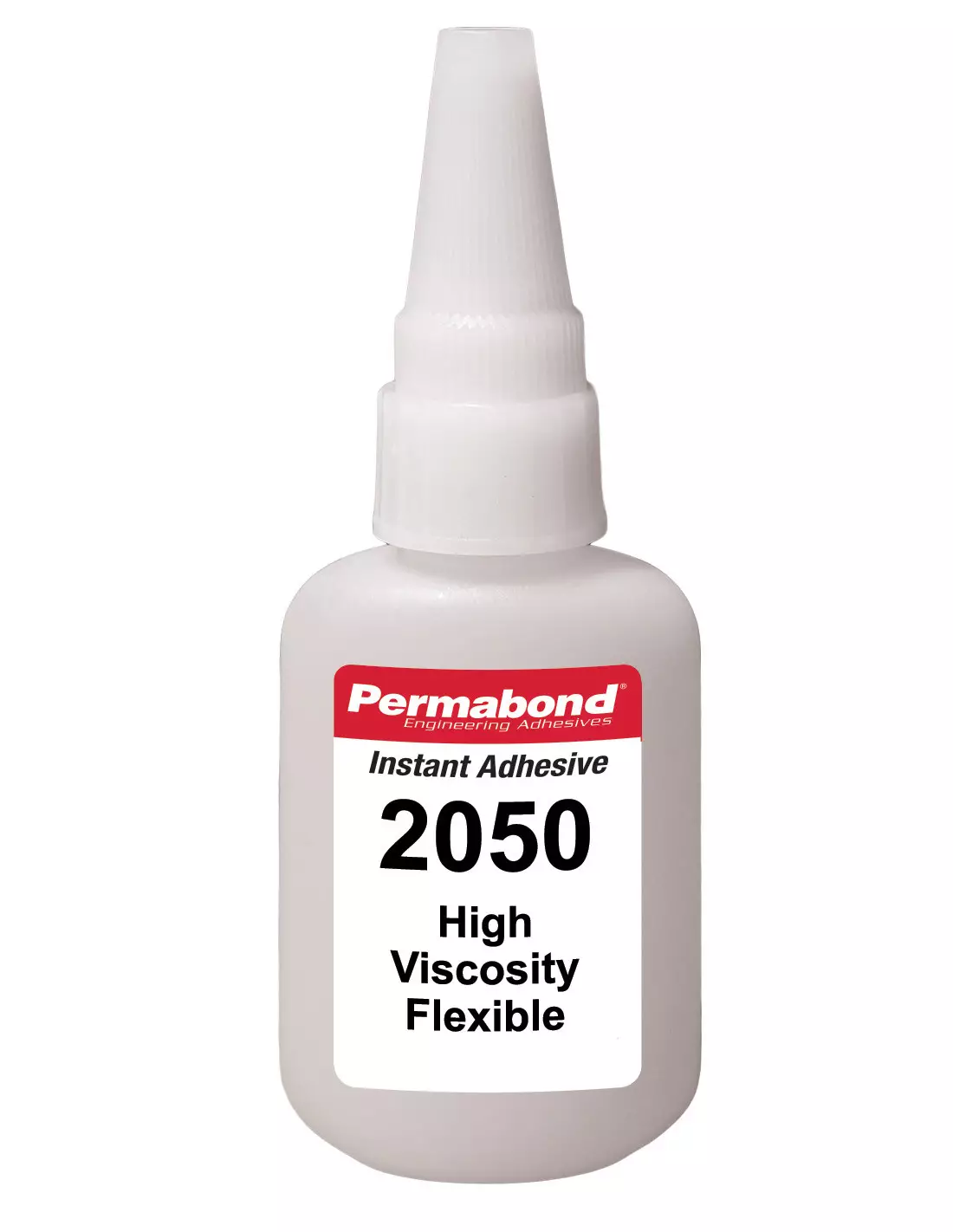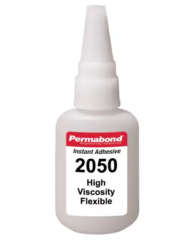 Cianoacrilato semi-flessibile Permabond 2050. Durezza 85D, tempo di lavorazione 10-15 s, resistenza totale in 24 h. Flacone da 20 g.