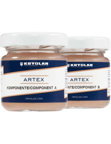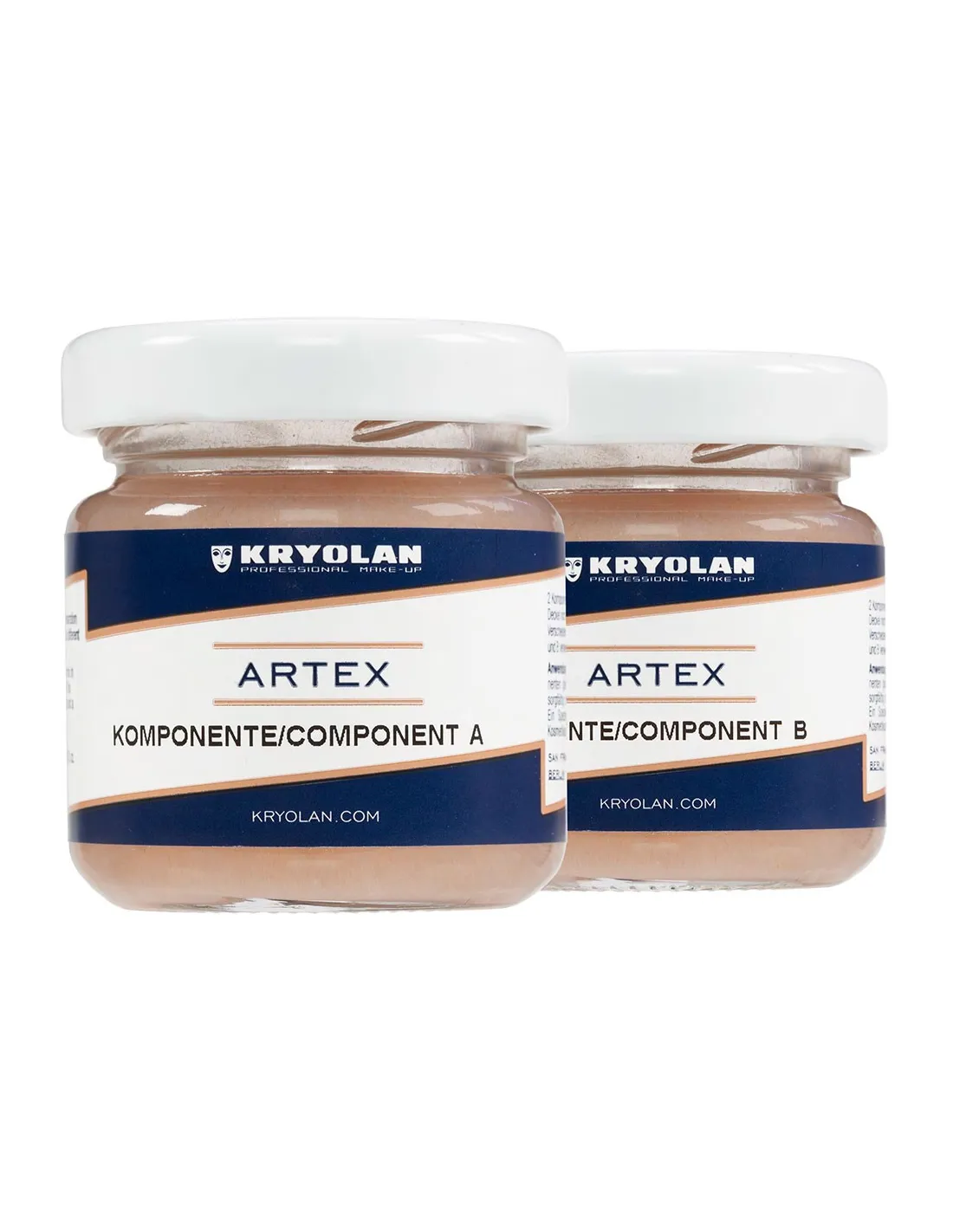 Artex è concepito per l'applicazione diretta sulla pelle. Su protesi in foam latex o materiali porosi il comportamento può variare. Per integrare protesi con la pelle, usa adesivi specifici come Telesis 8 e, se hai bisogno di regolare la consistenza dell'adesivo, puoi combinarlo con Telesis 8 Thinner.