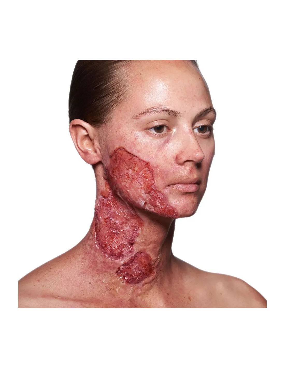 Artex si applica direttamente sulla pelle per costruire texture e rilievi che imitano lesioni, segni cutanei o trasformazioni di personaggio. Una volta indurito, il materiale rimane flessibile e si rimuove senza residui semplicemente tirandolo via.